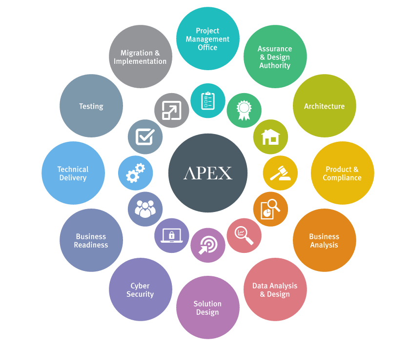 APEX provides a full testing suite with flexibility to fit specific programmes, projects or client circumstances. APEX’s testing suite encompasses services such as requirements review, risk-based testing review, test planning, management, scripting, strategy, execution and reporting and defect management. In-built management tools can be utilised to manage engagement with clients’ own resources for user and business acceptance and sign-off.