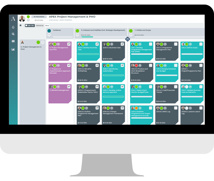 The culmination of many years work and decades of Financial Services change experience, our APEX framework brings structure and coordination to the delivery of programmes. Provided as an online tool which is powered by Method Grid, an AI-empowered platform that is used by thousands of organisations to support change, APEX contains a comprehensive array of project services, tools, documents and reference models that can be quickly configured to reflect the desired change approach for your programme, and can also integrate with your existing change methodology. From strategic overhauls to tactical implementations, APEX can cover the full spectrum of change scenarios.
