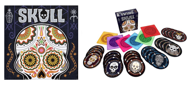 Skull – If you like bluffing games, then here’s a different one. Here, each player has 4 discs, one with a skull and three with a flower. You take it in turns to lay a disc face down in front of you until someone decides to open the bidding, declaring how many disks they can turn over (of all players) without revealing a skull. Whoever bid highest has to turn that many disks over. If they succeed, they get 1 point – if they fail, they lose one of their disks. Whoever scores two points first (or is last person with any disks) wins.
