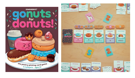Go Nuts for Donuts – In this game, players simultaneously bid for the donut they want from the display – but you only get it if you were the only one bidding for it. The donuts come with victory points or special abilities, but if more that one person wants it, then it’s discarded. Do you attempt to win the ‘best’ donut each round, or go for a lesser pastry and hope that at least you get something? A fun little game for up to 6 players.
