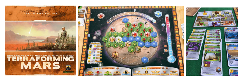 Terraforming Mars – If you’re happy to sit down for a few hours (at least 3 for your first game, but it does get quicker as you get used to it), then terraforming mars is time well spent. You’ll be buying and playing cards to form projects that go towards terraforming the red planet. Each player contributes to the overall goal, but the one who best contributes will be the winner. Terraforming comprises raising the planet’s temperature and oxygen levels, and unlocking vast oceans on the surface. Choosing which projects you want to push forward and achieving a level of synergy in the cards you play will be key to winning this game. Whether it be pushing the technological boundaries, growing forests and other flora and fauna, or building cities to house the population, each strategy has its merits – and costs. The game box says it takes 120 minutes – my experience with new players is to allow one hour per player. Just so you know.